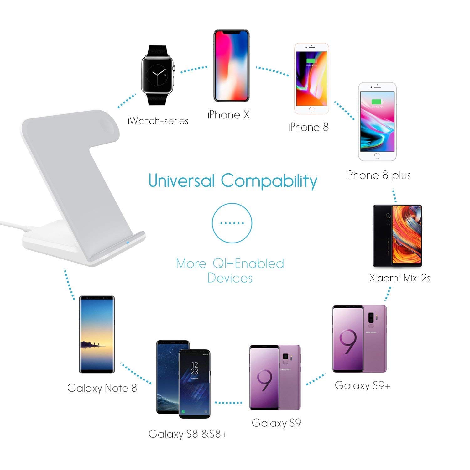 - ❤【FAST CHARGING & COMPATIBLE MODELS】: Iphone docking station lets you charge your devices 40% faster than than standard wireless charger, compatible with apple watch series1/ 2/3,Sumsung S9/S9 Plus/S8/S8 Plus/S7/S7 Edge/Note 8/Note 5/S6 Edge Plus S6/EdgeS6/Nokia/HTC/LG. In addition, it is also compatible with all Qi-enabled devices with standard charging speed.